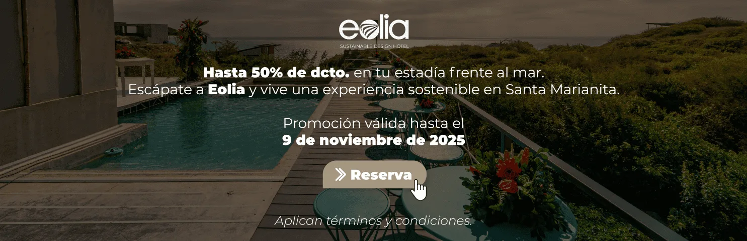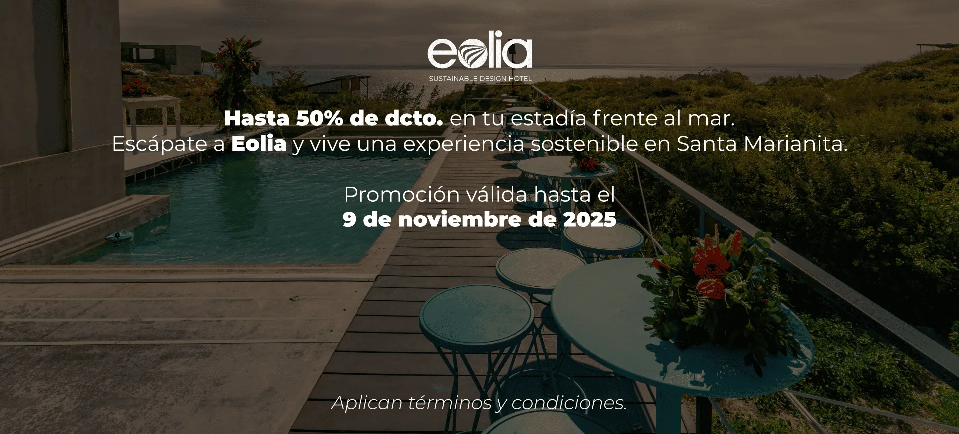 Eolia se encuentra ubicado en la Parroquia de Santa Marianita, Provincia de Manabí, a 15 minutos de la ciudad de Manta y a 25 minutos del Aeropuerto internacional de esta ciudad. Santa Marianita esta considerada como la zona con las mejores condiciones en el país para la practica de deportes de viento como el windsurf, kiteboarding, etc. lo cual le convierte en un sitio único para el desarrollo turístico.